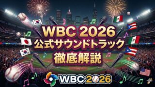 WBC 2026史上初となる公式サウンドトラック(テーマ曲)の詳細を徹底解説!ラテン音楽界の最重要プロデューサー・Tainyのもと、藤井風、TXTヨンジュン、Becky G、Young Mikoらが集結した全3曲の魅力と、WBCの音楽にラテン色が強い理由に迫ります。