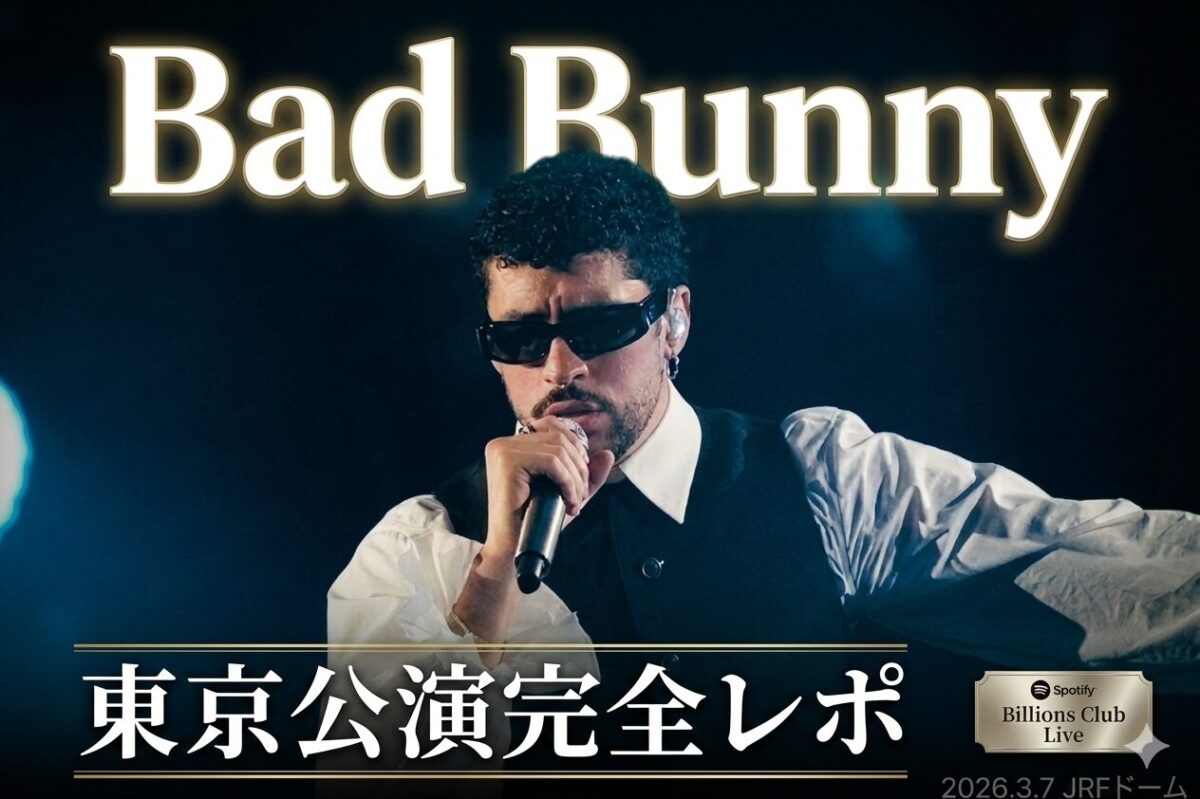2026年3月7日、千葉・JRFドーム。「Spotify Presents Billions Club Live with Bad Bunny」——その名を冠した招待制コンサートに集まったのは、わずか2,300人。しかしその2,300人は、ただの観客ではない。Spotifyの再生データが選び出した、バッド・バニーの日本トップリスナーたちだ。